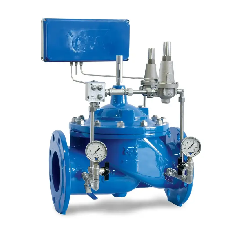 La vanne de modulation de pression aval Mod. XLC 310/410-ND-P est un régulateur à fonctionnement 100% hydraulique qui réduit et stabilise la pression aval à deux valeurs distinctes et préréglées (par exemple, pour une consigne jour et une consigne nuit), indépendamment des variations de débit ou de pression amont. Le passage d’une consigne de pression à l’autre est géré automatiquement par un programmateur à piles EP68, contrôlable à distance via une application Bluetooth intuitive, sans nécessiter d’accès direct à la vanne. Conçue pour minimiser la perte de charge, le bruit et les dommages liés à la cavitation, cette vanne est particulièrement adaptée aux campagnes de gestion de la pression et de réduction des pertes d’eau.